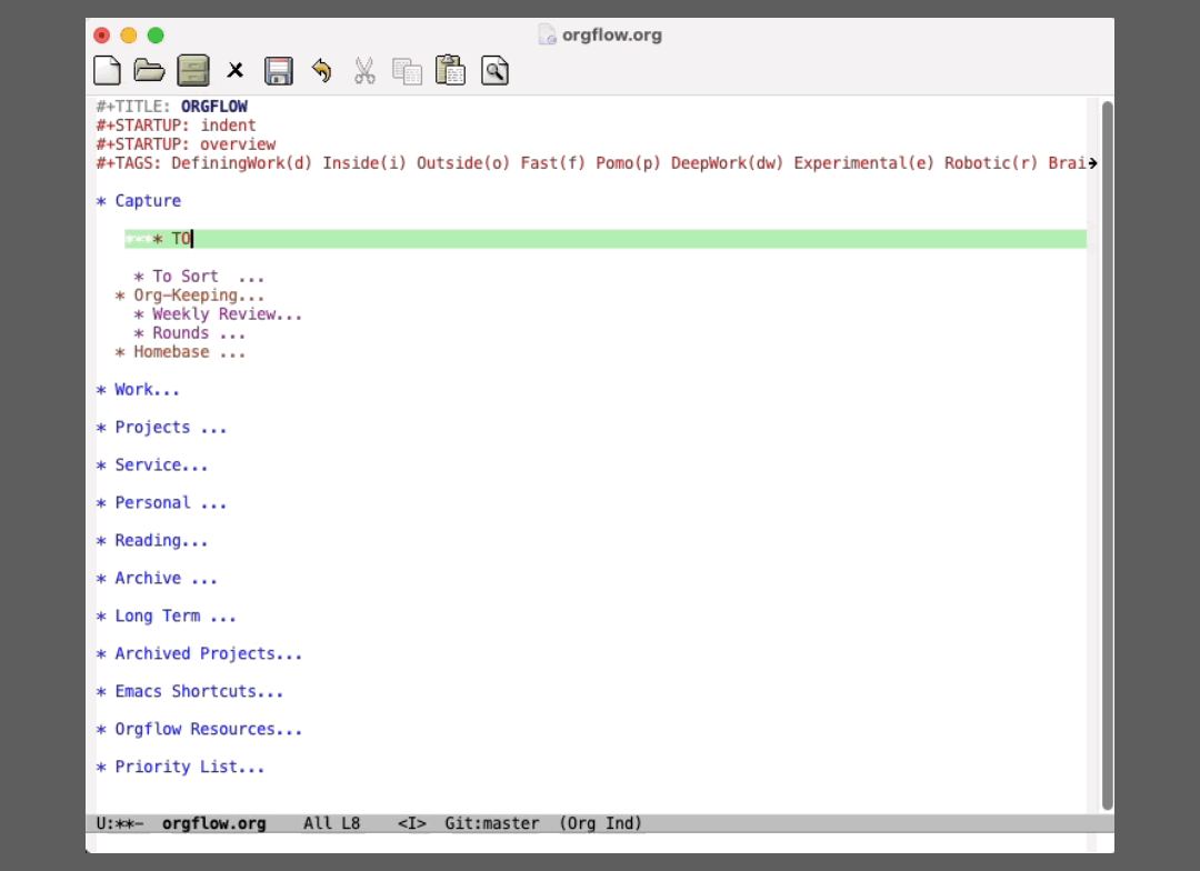 And if this seems like a lot to think about each and every time, it actually isn’t that bad thanks to org-mode. I made a little gif to show how fast this process can be when coming up with a new action item.